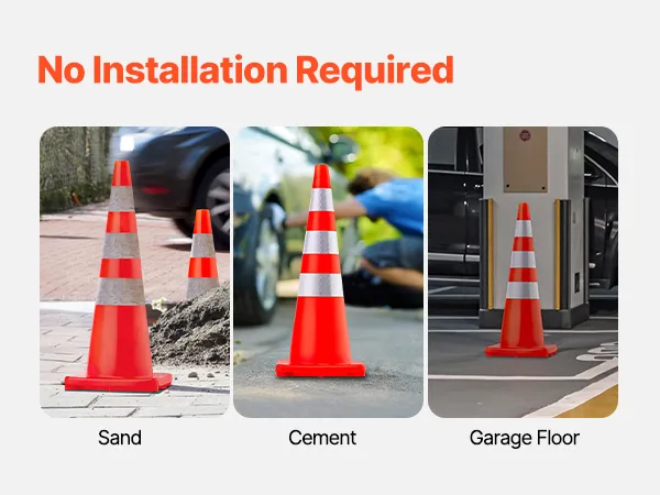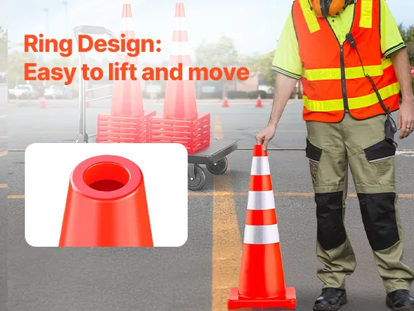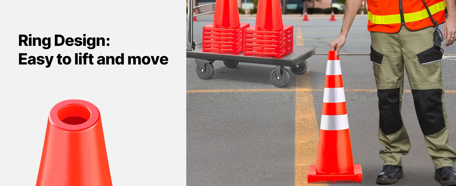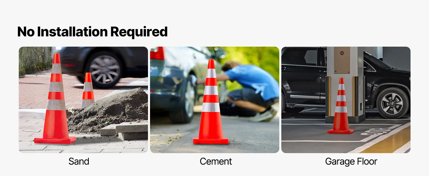 They are ideal for traffic control, helping to direct vehicles and pedestrians safely. Their bright orange color and reflective collars make them perfect for events, ensuring order and safety. They can be used by schools to manage parking and drop-off areas, improving student and staff safety. These cones have a wide range of applications, including construction zones, which help delineate work areas while protecting workers and the public. No matter what setting it is, these cones stand out.