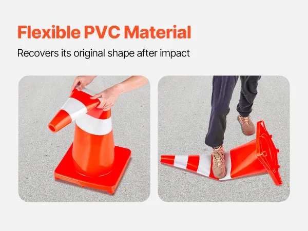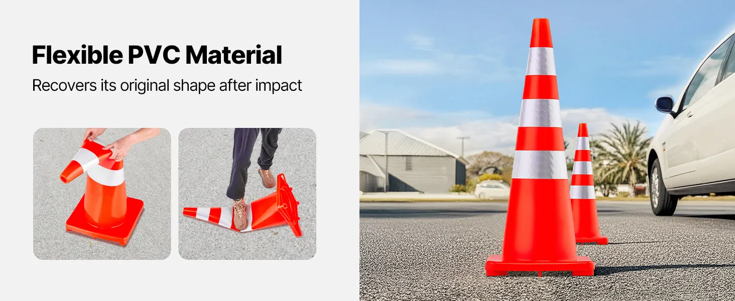 These safety cones are made from strong PVC material. This ensures they can withstand the elements and heavy use. They are flexible yet robust, making them ideal for various applications. Whether used in construction zones, parking lots, or school driveways, these cones are designed to last. The material is dense and durable. It provides a high level of reliability. Their construction ensures that they bounce back into shape if knocked over. These cones provide long-term use and value. With these safety cones, you won't have to worry about frequent replacements.