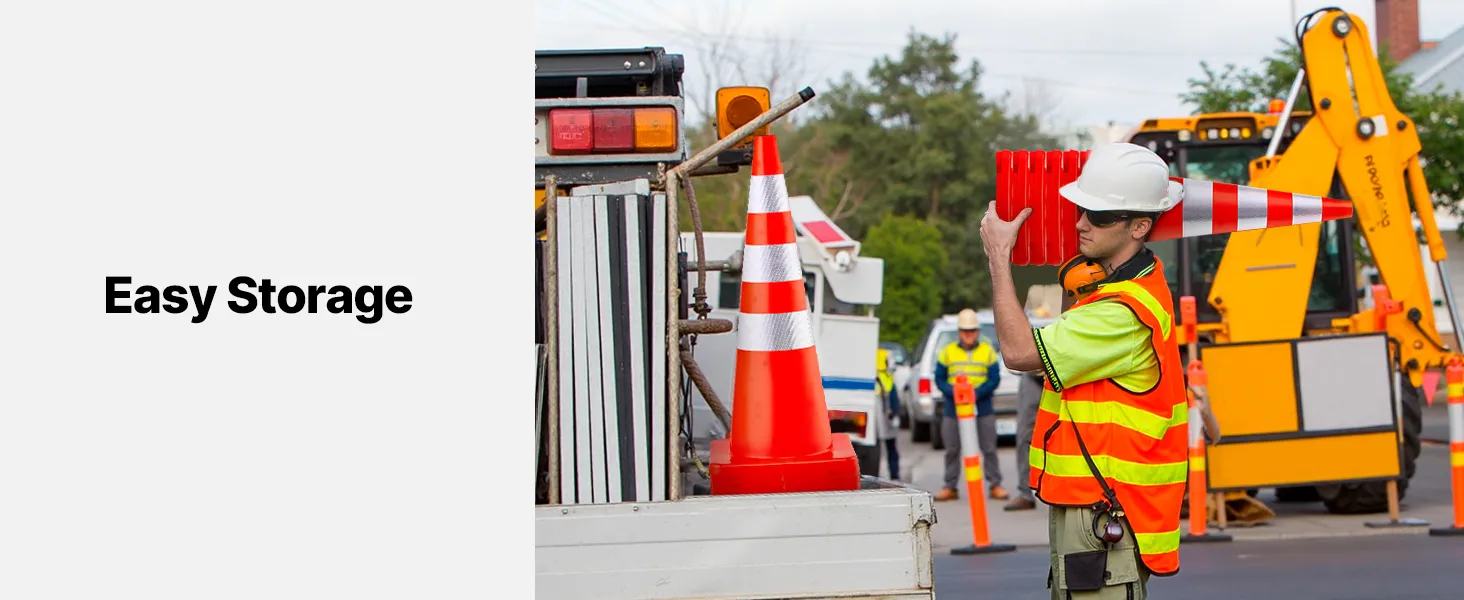 These safety cones are built tough, but they're not too heavy. They are easy to store and transport. Their stackable design allows you to keep multiple cones in a small space. This feature is particularly useful for event organizers, schools, and construction companies with limited storage. Their portability allows for easy stacking and storage away from the box when not in use, thereby saving space. It makes transportation easy to different locations, ensuring you always have them when needed.