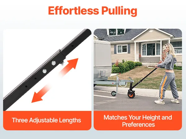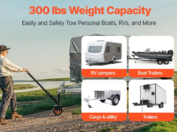 With a maximum load capacity of 300 lbs, this trailer dolly ensures sturdy and flexible towing for a wide range of vehicles, from RVs and boats to other recreational trailers, making trailer management effortless.