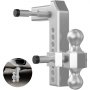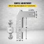 This trailer hitch has a 8" drop distance that adjusts in 1" increments. By inserting the pins into different mounting holes, you can set the towing balls at varying heights above the ground for various vehicles.