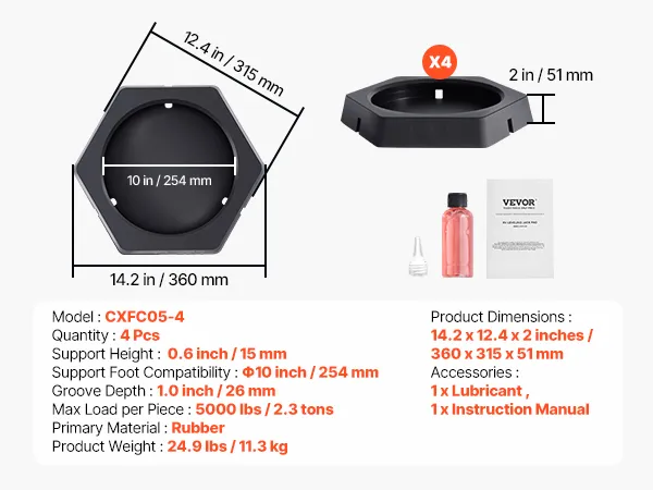 Our round RV leveling pads are made of high-quality rubber with a durable, tear-resistant, and anti-slip design. These RV jack pads(4 Pcs), with a 5000 lbs capacity per pad, improve stability on uneven surfaces. And Lubricant is included for easy installation.
