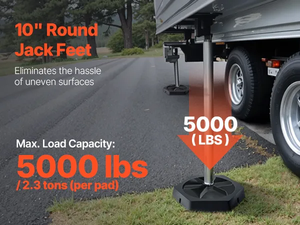 Enhanced Stability: Each trailer jack pad has a maximum load capacity of 5000 lbs (2.3 tons), providing secure and stable support for your RV, preventing deformation. The drainage hole design disperses support pressure while helping with water drainage, preventing the RV leveling jack from rusting