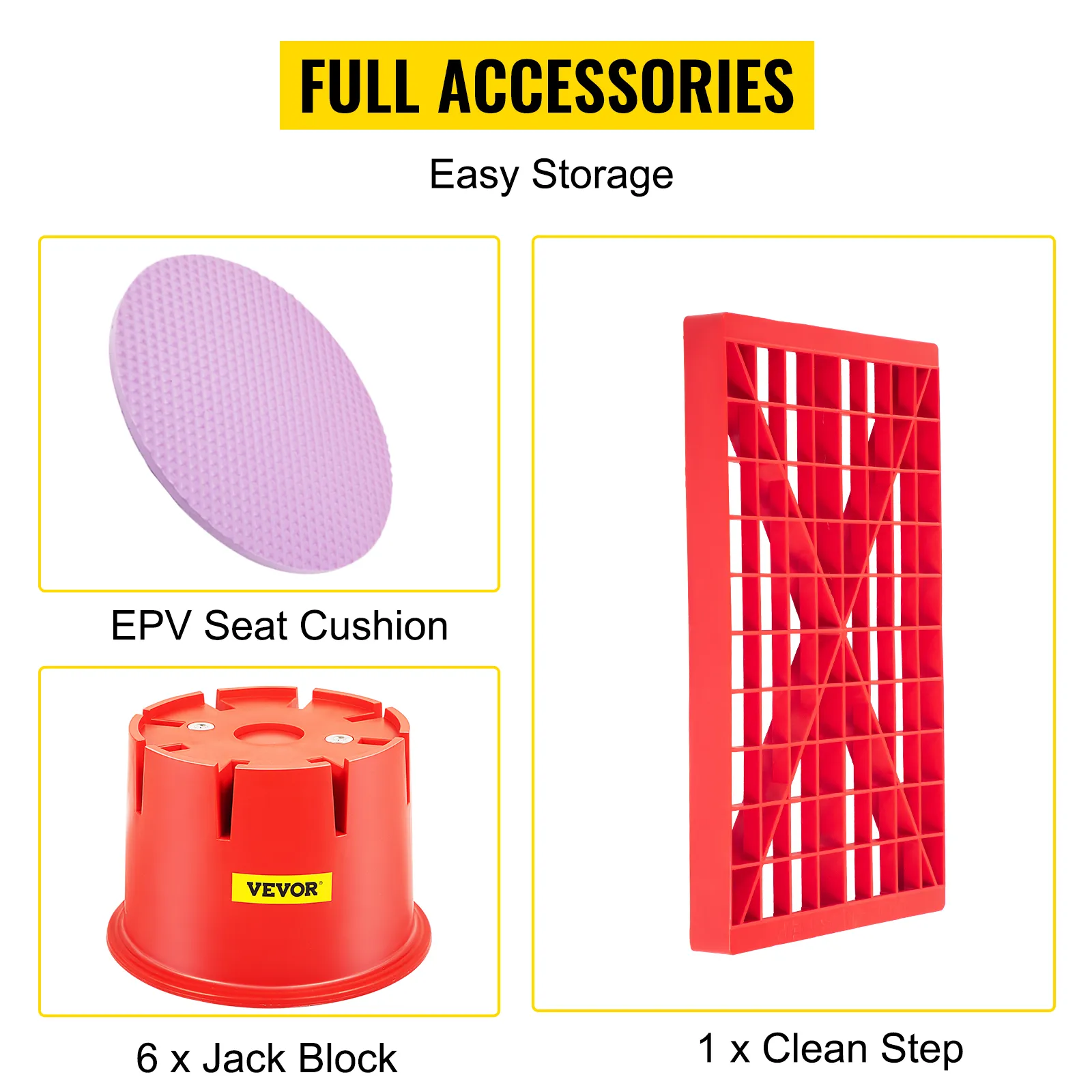 Our camper jack blocks come with EPV seat cushions for personalized use. A clean step will make your car much cleaner.