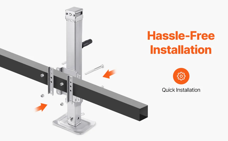 • Easy Installation: Our trailer jack stand comes with all the necessary parts and detailed assembly instructions. It can be bolted to the trailer tongue. Have your trailers up and ready to use in no time—no extra hands needed.