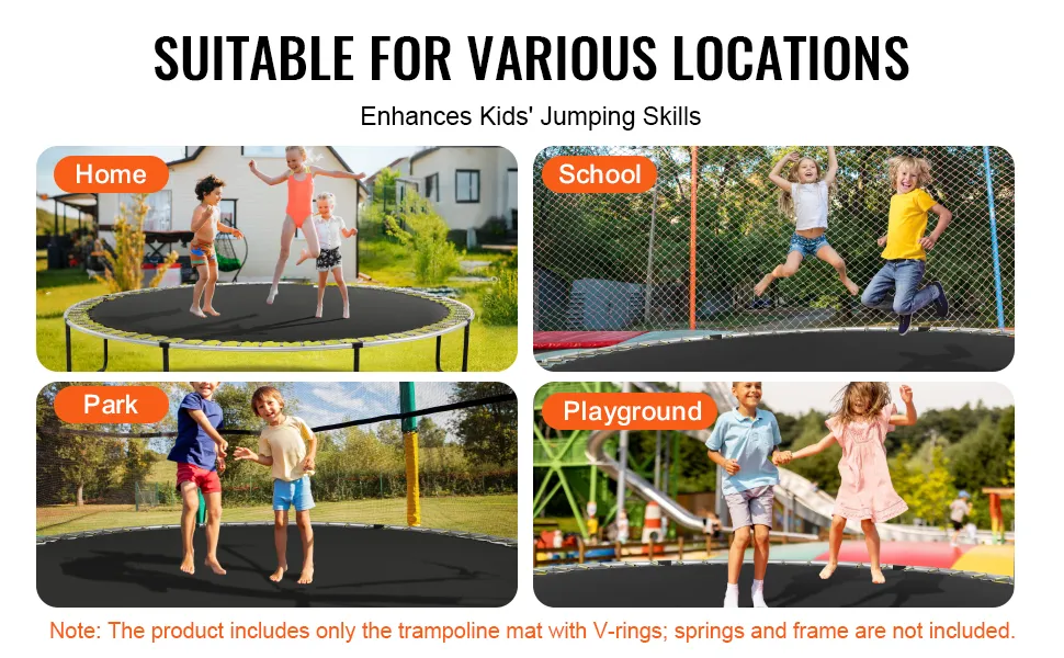 This premium round trampoline mat is widely used in trampolines at home, schools, parks, and playgrounds, helping to enhance children's jumping skills.