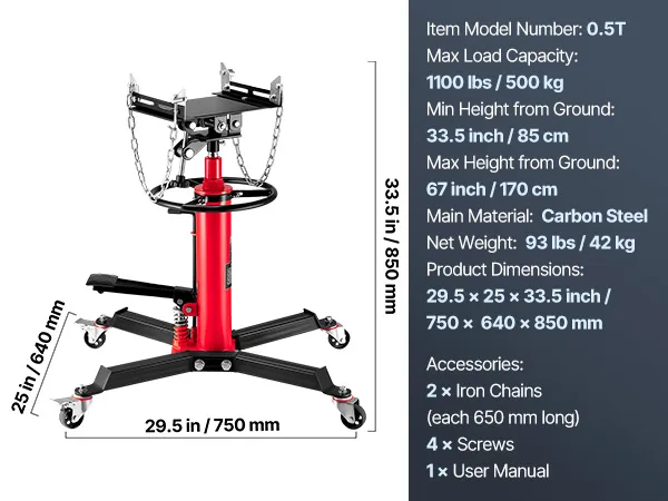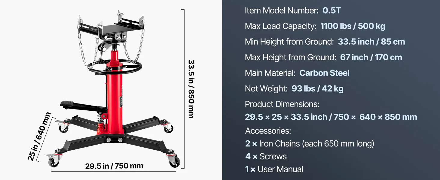 The VEVOR transmission jack with foot pedal is durable and strong. It's made with high-quality steel. This ensures it can handle heavy lifting tasks. The jack’s design is robust and reliable. You can support up to 1100 lbs. So, it works for various automotive parts. The sturdy construction ensures it stays in good use. The jack’s durability means you won’t need frequent replacements. That makes it a cost-effective tool for your garage. The strength of the cylinder will keep things safe and efficient during lifting. This is a dependable tool suitable for any home mechanic.