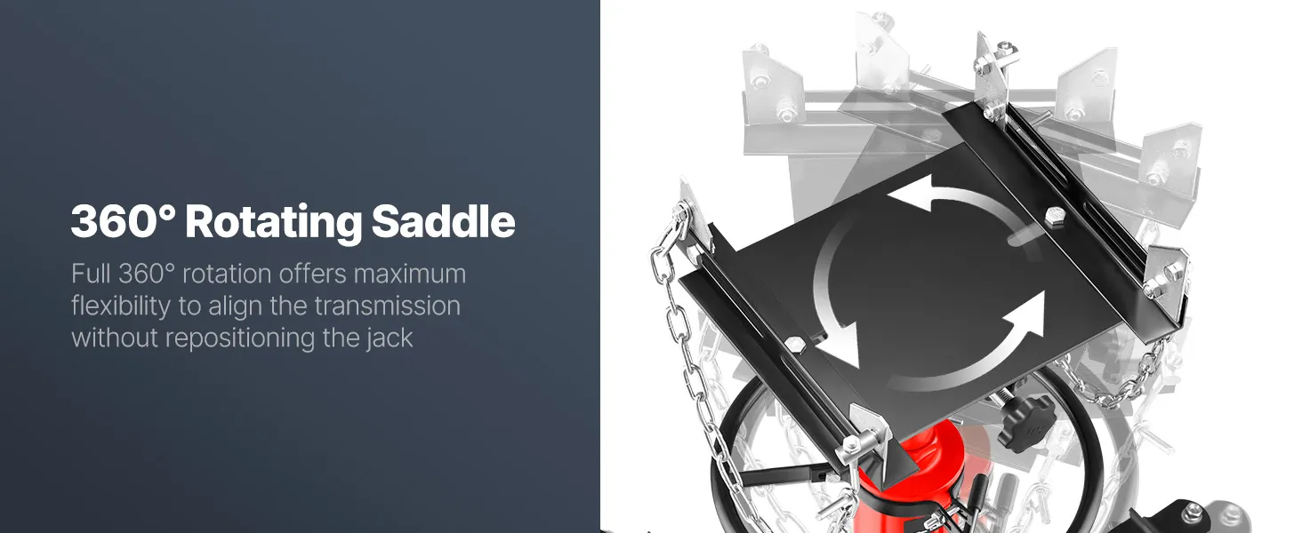 This garage transmission lift can be used for more than just transmissions. You can use it for gas tanks and rear ends. This makes it a valuable tool in any garage. The jack’s design allows for easy adjustments. So, it is suitable for various lifting tasks. 360° swivel wheels make it versatile. You can move the jack around your workspace. This transmission jack is advisable for any home garage because its versatility ensures you get the most out of your purchase.