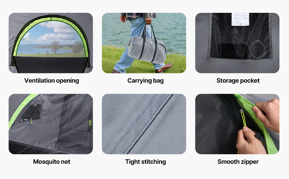 Made from durable 210D Oxford fabric with tight stitching and a PU2000 waterproof rating, the tent for truck bed helps block heat while keeping the rain out, ensuring a dry and comfortable space inside.