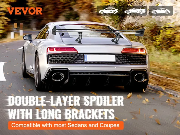 This double-layer spoiler with long brackets is compatible with most sedans and coupes, eliminating your worries about matching your vehicle model. It is more suitable for racing cars.