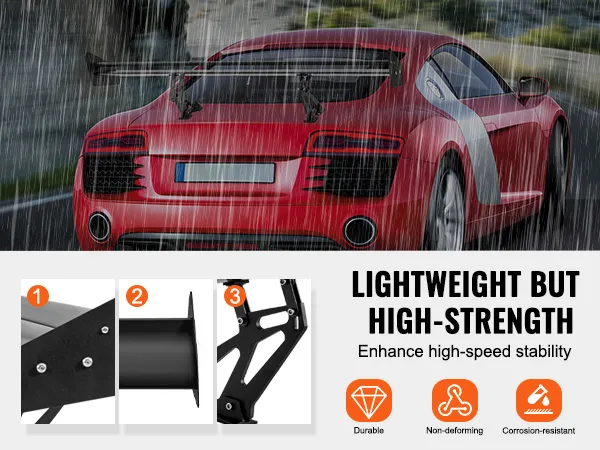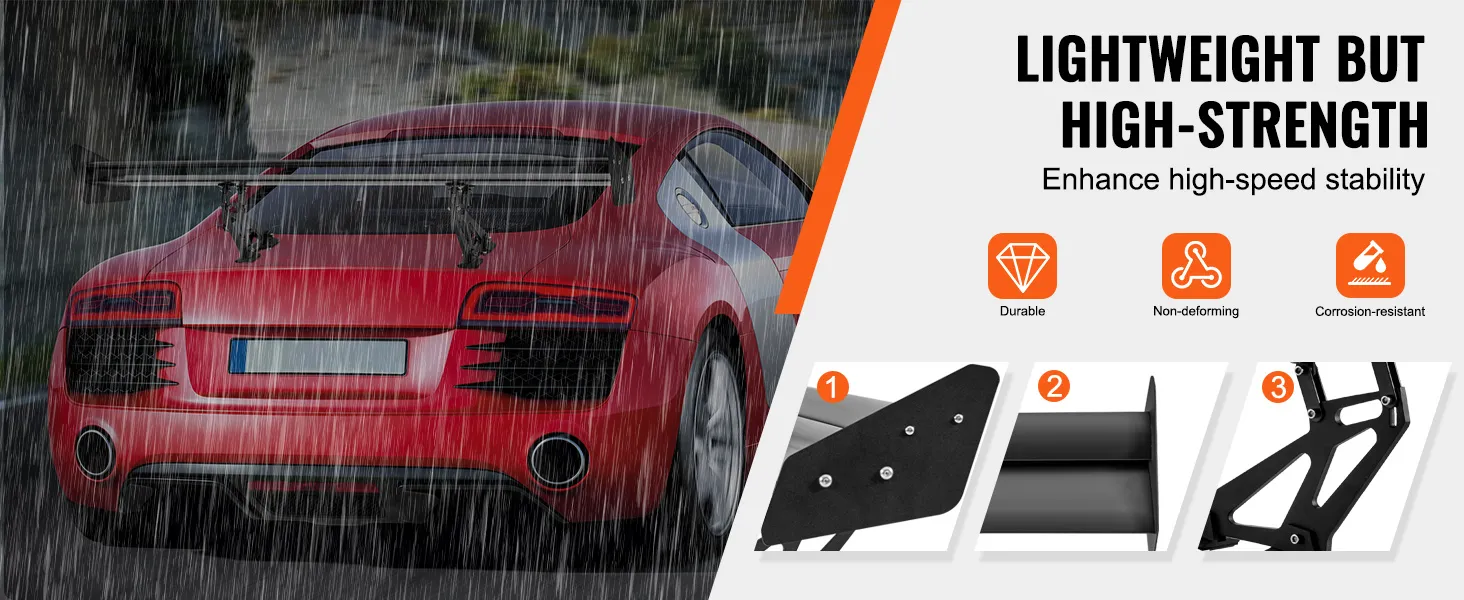 The VEVOR GT wing car spoiler is designed to improve driving stability. The double-layered design enhances aerodynamic effects during operation. This results in stronger stability at high speeds. Its increased downforce improves grip during high-speed turns. It reduces the risk of losing control. This feature is especially beneficial for performance or racing vehicles. You can drive with more confidence, knowing your car is more stable. This spoiler works best for those who love speed and want added safety.