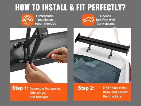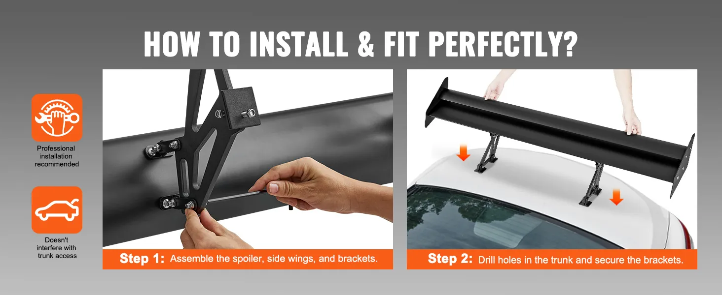 Seamless Installation: This universal spoiler can be installed on any hatchback car with a flat trunk. Prior to securing the bolts to your vehicle, drilling is required, which will not hinder the opening of the trunk. However, for a flawless installation, it's recommended to seek assistance from a professional.