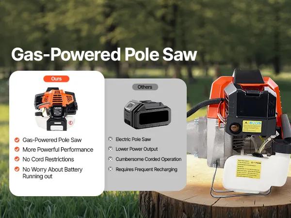 Whether for home gardens, orchards, or professional landscaping, this gas powered pole saw is the perfect tool. Its powerful engine and efficient cutting capacity make it ideal for outdoor trimming tasks.