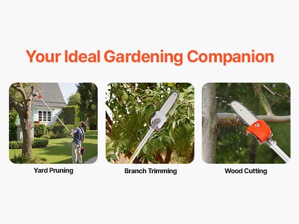 Our cordless pole saw is ideal for home gardens, orchards, or professional landscaping, this pole saw can handle a wide range of tasks. Its powerful engine and efficient cutting capacity make it an ideal tool for outdoor pruning.