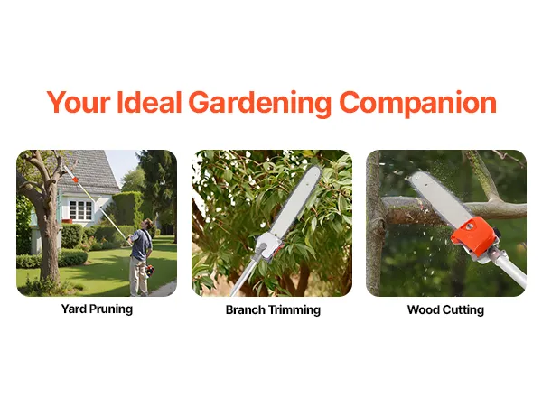 Our cordless pole saw is ideal for home gardens, orchards, or professional landscaping, this pole saw can handle a wide range of tasks. Its powerful engine and efficient cutting capacity make it an ideal tool for outdoor pruning.