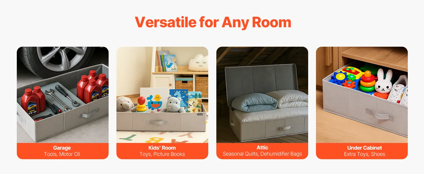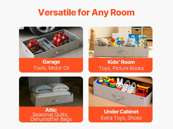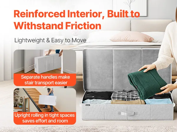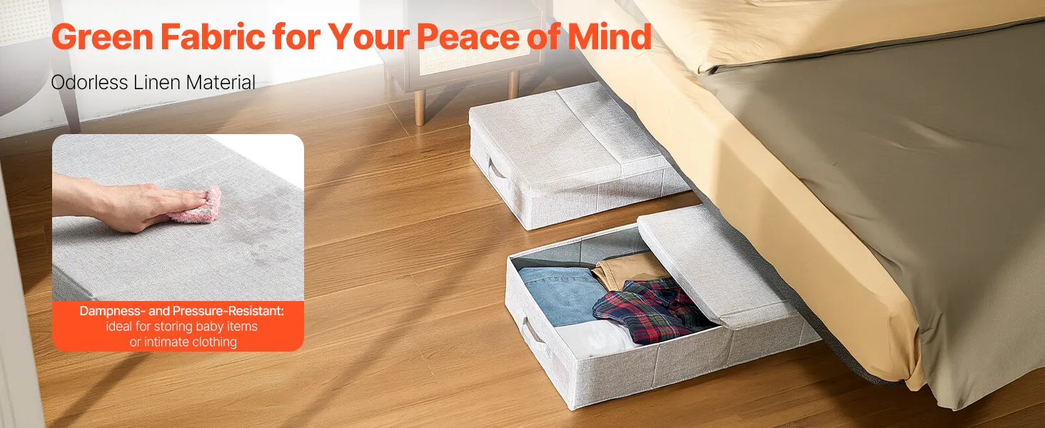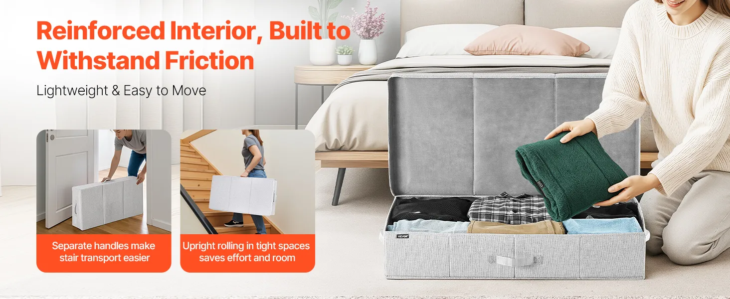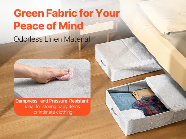 Dust-Resistant Design: Our underbed storage features a premium non-woven flip lid with odorless thickened linen fabric for breathability. The reinforced construction enhances pressure resistance and damp resistance, maintaining durability through repeated use to extend lifespan