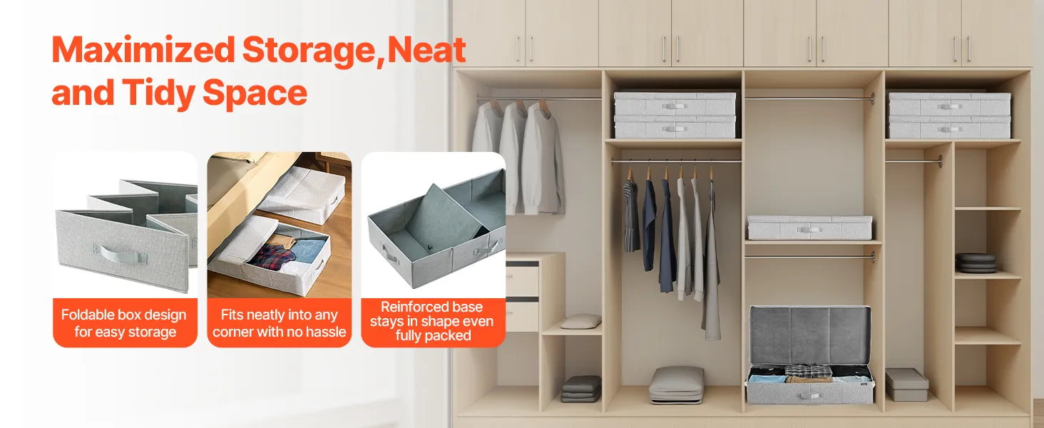 Foldable Design: Featuring an innovative quick-fold design, this under bed clothes storage easily collapses flat, saving storage space. Its double-zippered construction also maximizes under-bed space utilization