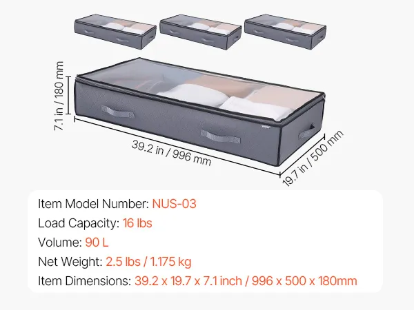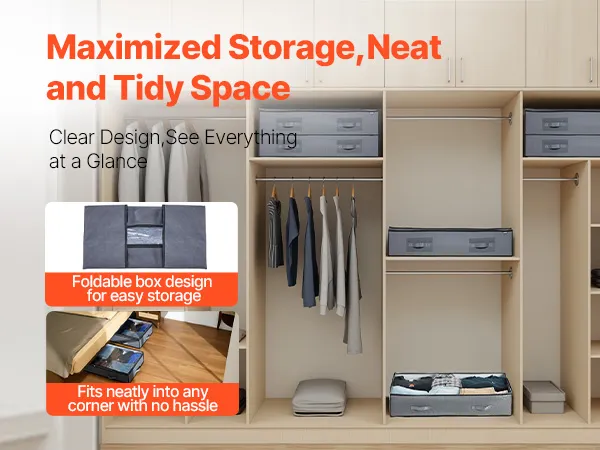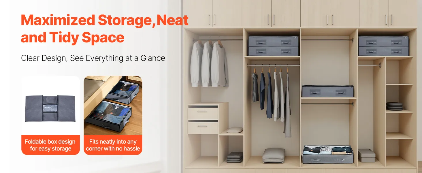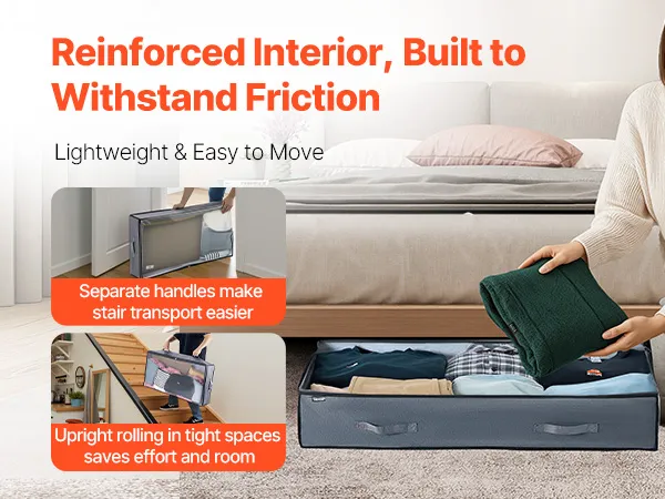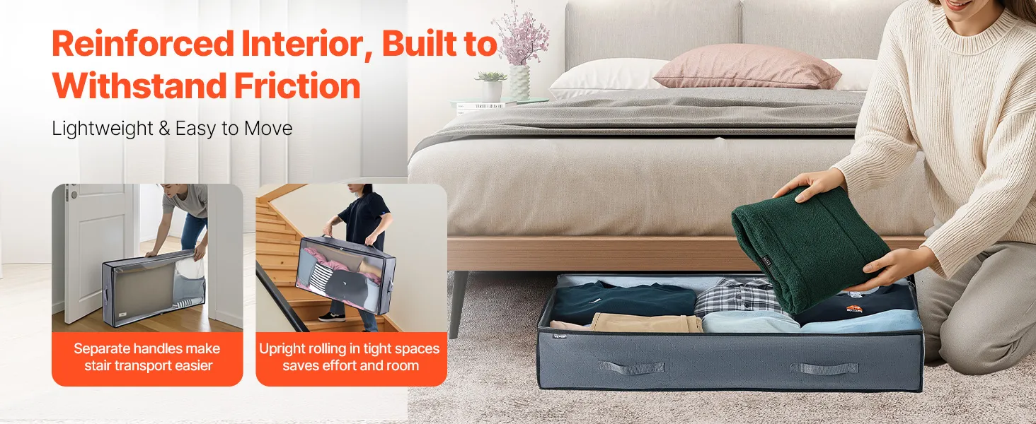 Foldable Design: Featuring an innovative quick-fold design, this under bed clothes storage easily collapses flat, saving storage space. Its double-zippered construction also maximizes under-bed space utilization