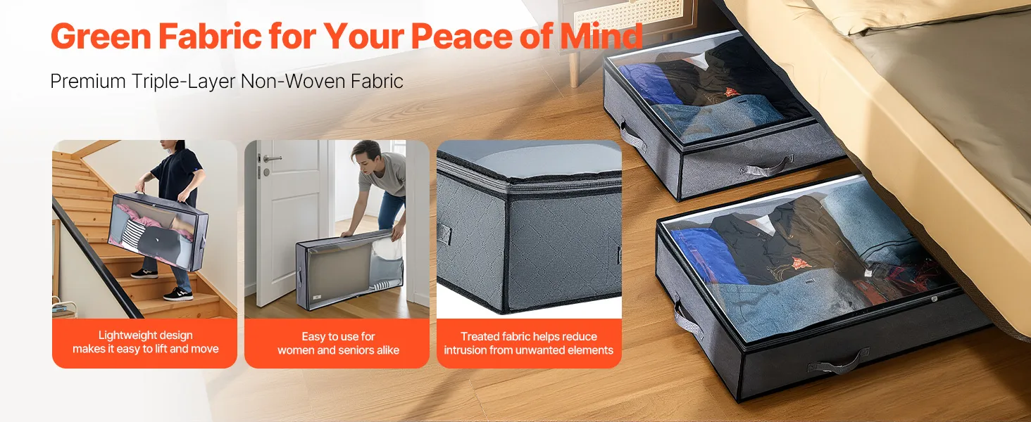 Our underbed shoe storage uses reliable materials with no harmful substances. It is non-hazardous for direct contact with clothes and bedding. The breathable design ensures air circulation, avoiding odors