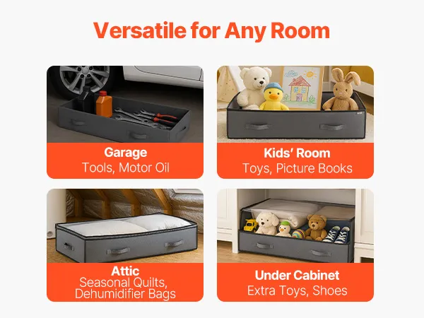 This under-bed storage fits beneath beds, sofas, desks, and furniture, offering a practical solution for organizing clothes, shoes, and toys.