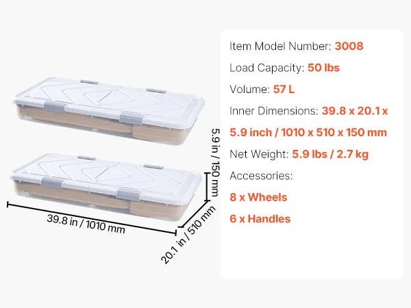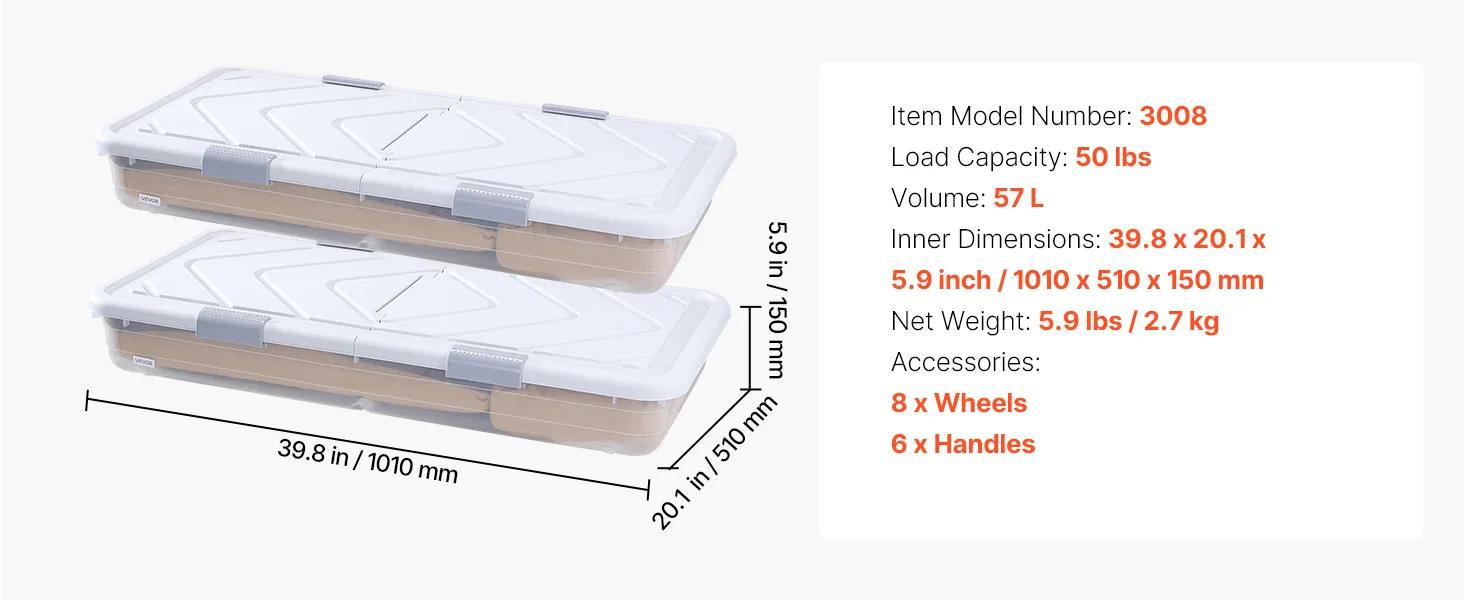 Extra Large Capacity: This under bed storage measures 39.8 x 20.1 x 5.9 inches and supports up to 50 lbs. Designed to fit under standard beds, three units can be stacked vertically. Its spacious capacity holds shoes, toys, clothes, books, and other heavy items. Sturdy, stable, and durable