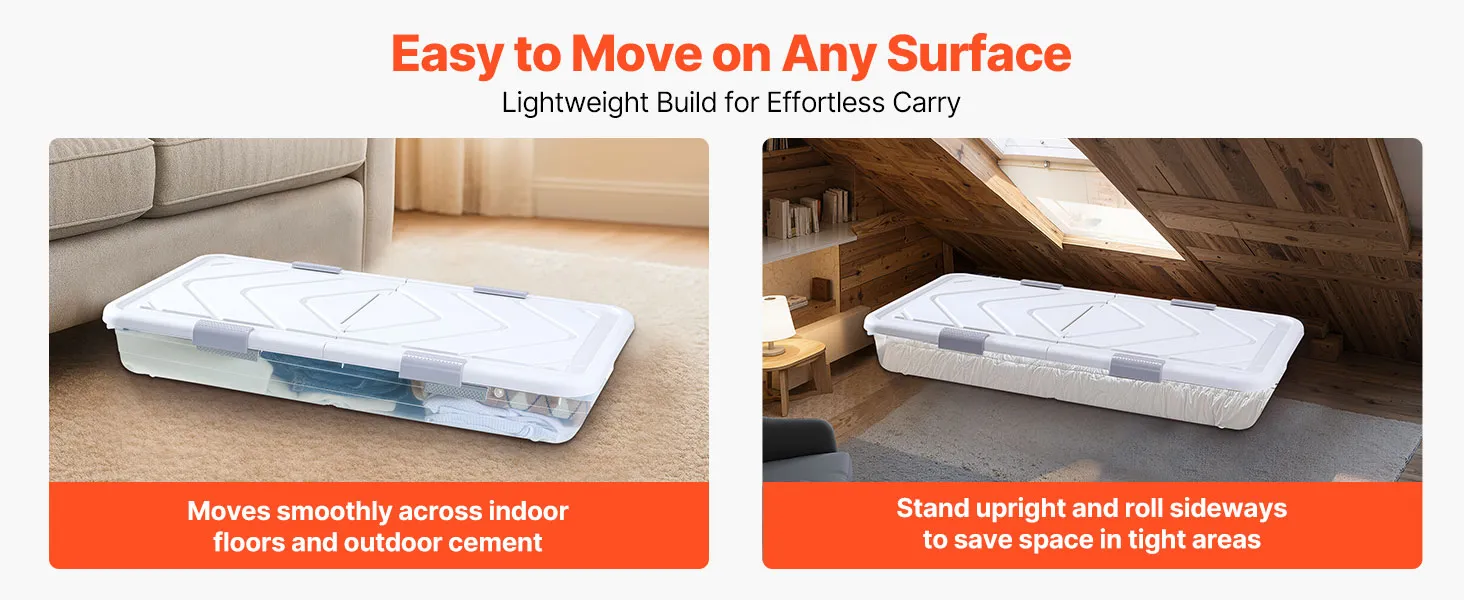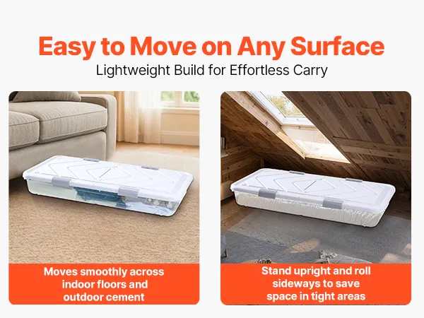 Equipped with a side handle and four 360° smooth-rolling casters (some with locks), this rolling under bed storage glides easily on various surfaces for secure placement.