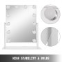 The stand is constructed with sturdy iron for durability & high stability. This vanity mirror includes twelve anti-explosion bulbs around and two for replacement.