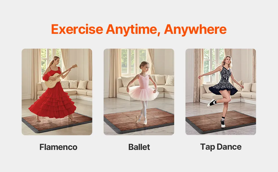 Non-Slip & Waterproof: The smooth surface is coated with a waterproof, anti-slip layer, making it perfect for tap dancing, flamenco, ballet, and other workouts. It provides excellent protection for your body and ensures safety during exercises. The included edge fasteners reinforce the mat, while its firmness offers clear feedback for tap sounds. This gym flooring for home gyms offers a comfortable, stable surface for your movements.