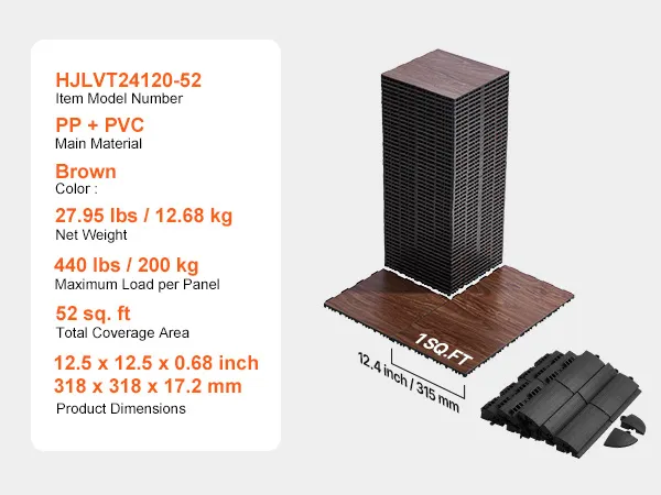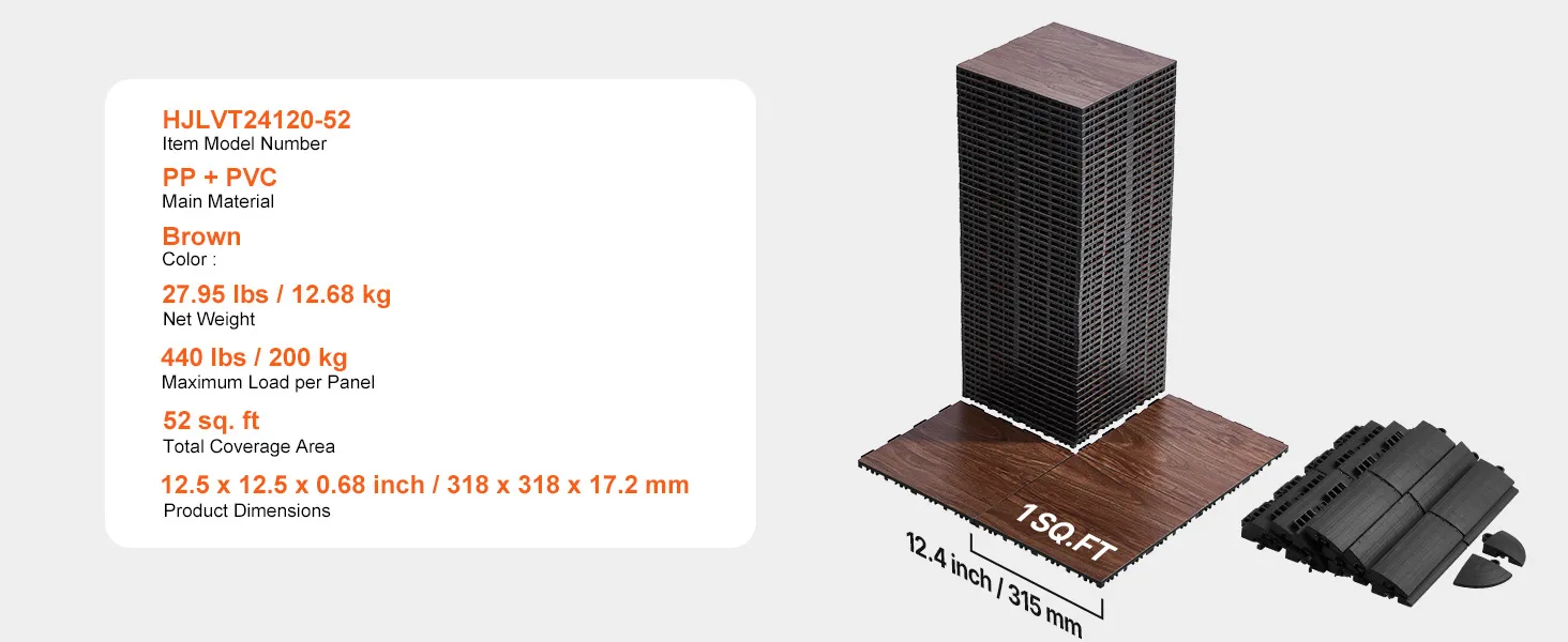 VEVOR Dance Floor Tiles, 12.4 x 12.4 in 52 Piece Interlocking Dance Flooring, Portable Dance Practice Floor with Cushioned Base  (Oak Wood Grain, 52 sq. ft/Box ) VEVOR Dance Floor Tiles, 12.4 x 12.4 in 52 Piece Interlocking Dance Flooring, Portable Dance Practice Floor with Cushioned Base  (Oak Wood Grain, 52 sq. ft/Box )