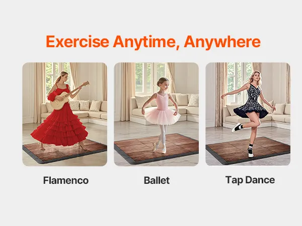 • Non-Slip & Waterproof: The smooth surface is coated with a waterproof, anti-slip layer, making it perfect for tap dancing, flamenco, ballet, and other workouts. It provides excellent protection for your body and ensures safety during exercises. The included edge fasteners reinforce the mat, while its firmness offers clear feedback for tap sounds. This gym flooring for home gyms offers a comfortable, stable surface for your movements.
