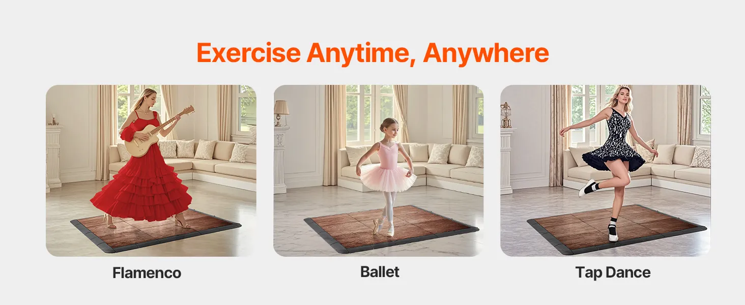 Non-Slip & Waterproof: The smooth surface is coated with a waterproof, anti-slip layer, making it perfect for tap dancing, flamenco, ballet, and other workouts. It provides excellent protection for your body and ensures safety during exercises. The included edge fasteners reinforce the mat, while its firmness offers clear feedback for tap sounds. This gym flooring for home gyms offers a comfortable, stable surface for your movements.