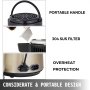 The upgraded filter is made of 304 stainless steel; a unique and portable handle on the top for easy carry; a built-in thermostat to prevent overheating and ensure auto-off (when the temp is over 320℉).