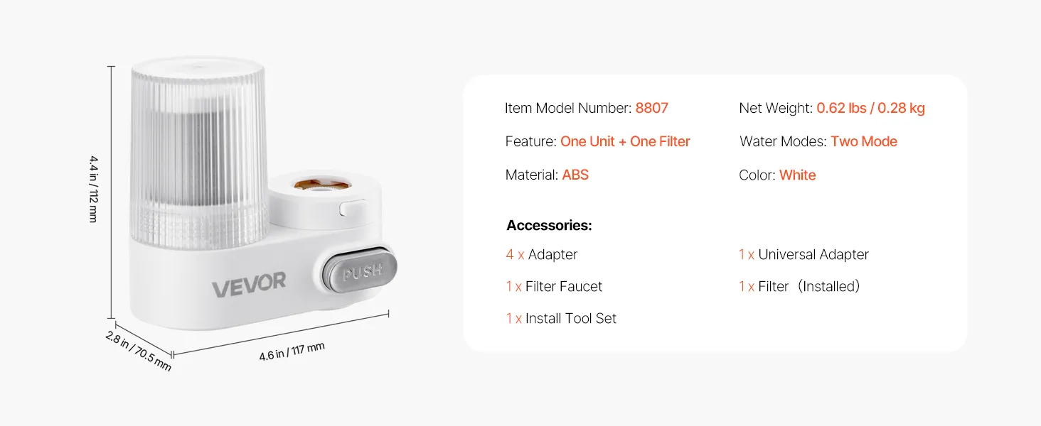 Compact and Elegant: This efficient sink water filter is perfect for use in the bathroom, wash area, pet drinking water, kitchen, and more. Its compact and elegant design also makes it a great surprise gift for holidays