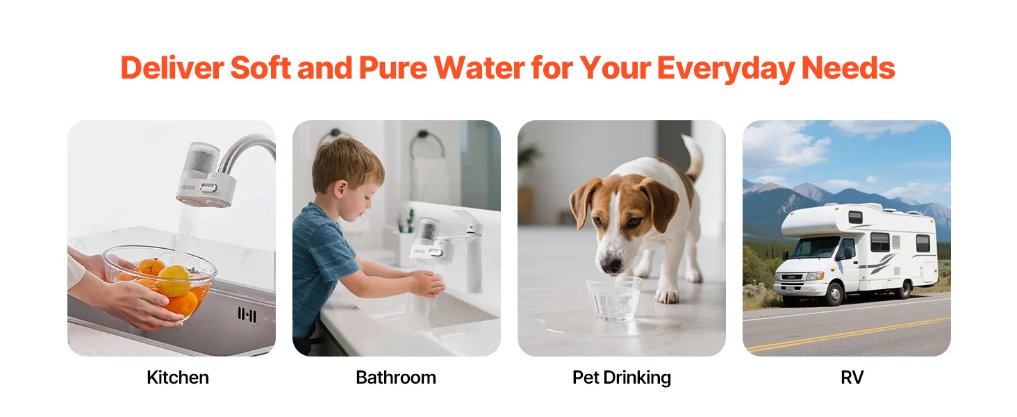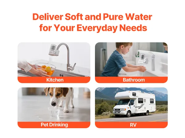 The sink water filter is suitable for use in kitchens, bathrooms, pet drinking water, RVs, and more, meeting all your purified water needs.