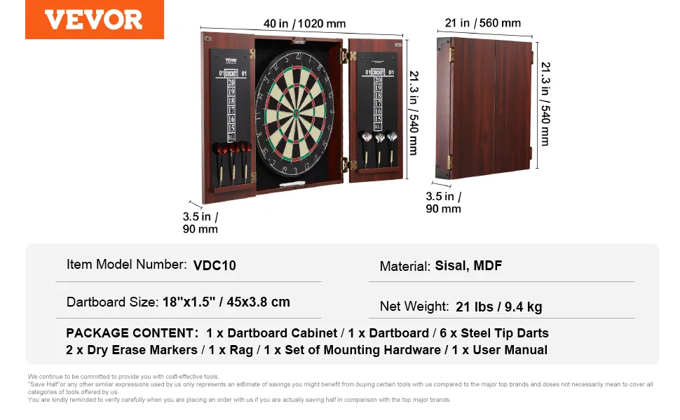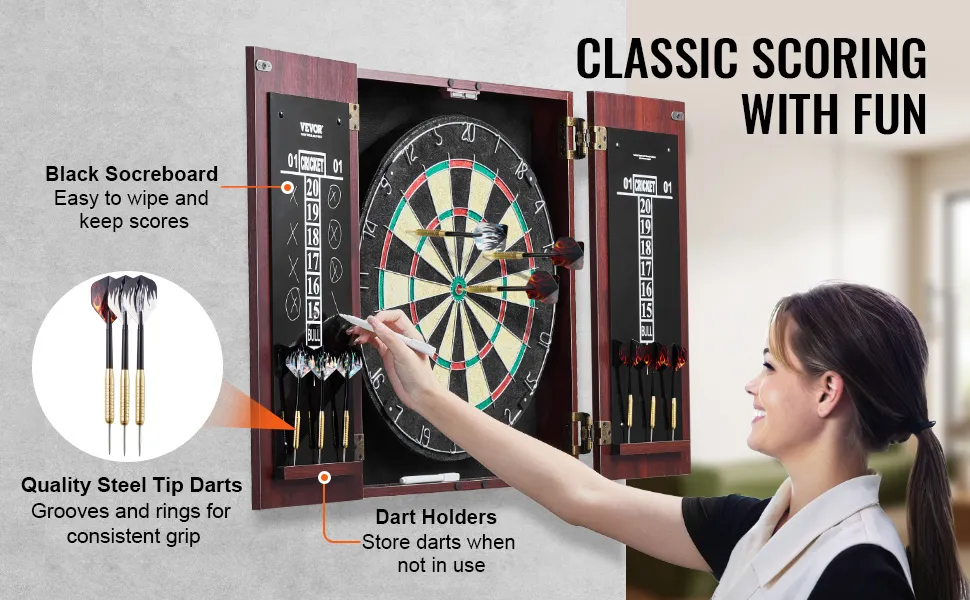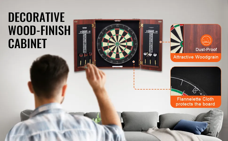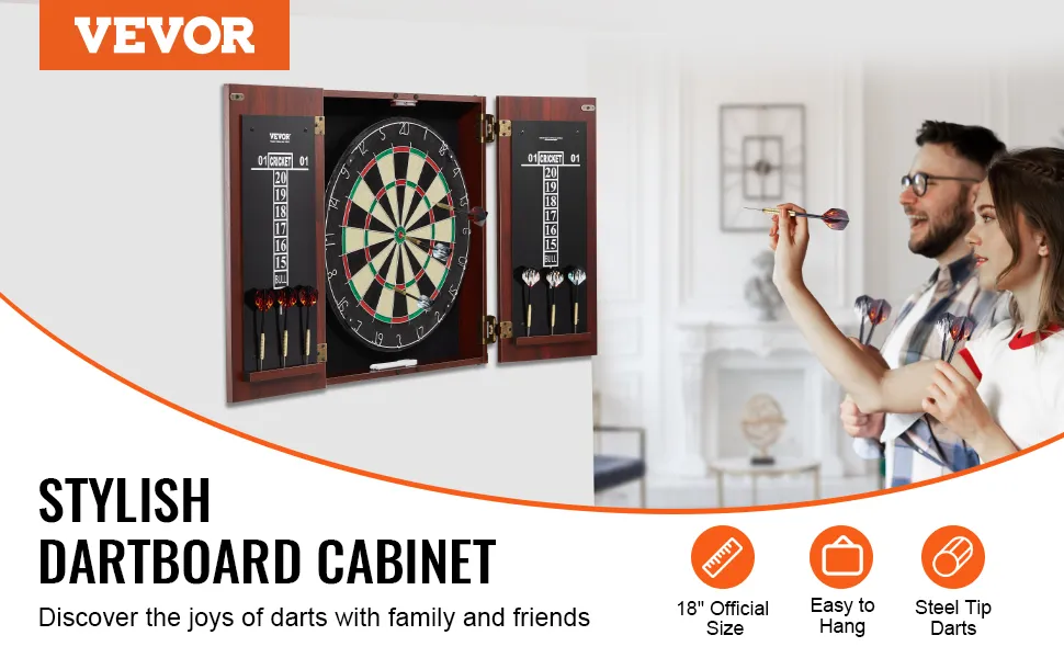 VEVOR Dartboard and Cabinet Set, Ready-to-Play Bundle Official Size Dartboard Cabinet, Steel Tip Dart Hideaway Cabinet, Features Easy Assembly, Complete with All Accessories, Perfect for Cricket Games