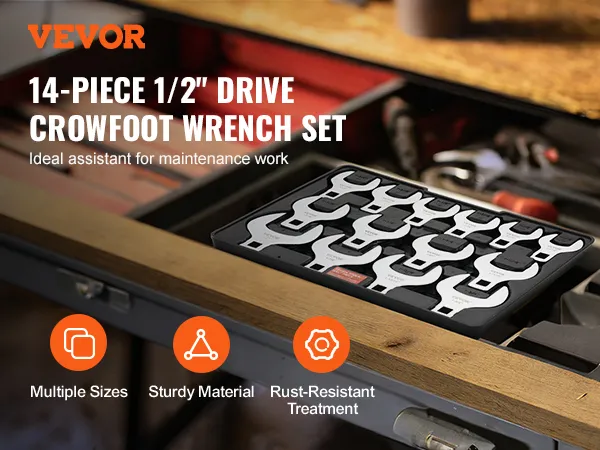 The VEVOR 14-piece SAE crows foot wrench is perfect for mechanical maintenance and repairs. They are ideal for working on hydraulic fittings. Use them for electric motor bases. No matter what the task is, these wrenches have you covered. The 1/2-drive design makes them compatible with various tools. It's excellent for reaching tight spaces and hard-to-reach areas. These torque wrenches provide precise fastening and disassembly. These torque wrenches are essential additions to any toolkit. This set simplifies your tasks and improves efficiency.
