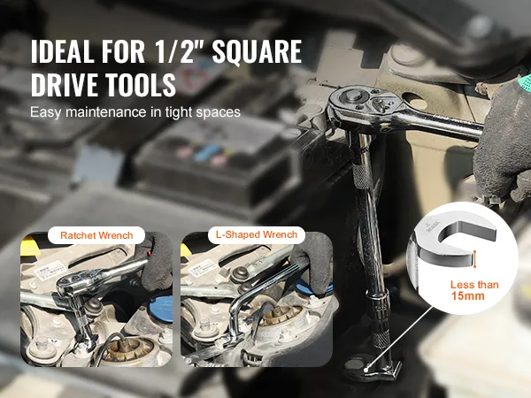 This makes them ideal for tight spaces. They are compatible with various tools like extension bars, ratchets, and torque wrenches. This versatility makes them perfect for complex environments where you need to ensure precise fastening and disassembly. Tight spaces have no problem anymore. The VEVOR mechanical maintenance wrench can reach and handle fasteners in hard-to-reach areas without any trouble. Their compact design allows for easy use within confined spaces. This feature is essential for any mechanical maintenance or repairs. The 1/2-drive design is a game-changer in accessibility and ease of use.